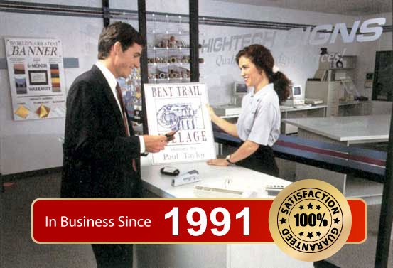 That’s because Hightech Signs is the only company that practices “the art of visual marketing” on every sign and banner we sell. That means you can count on a Hightech sign to motivate your customers as well as communicate your message. Our state-of-the-art Montreal facilities allow us to give you the best quality and fastest turn-around at prices that maximise your budget. That makes signvertising to your customers effective and affordable.